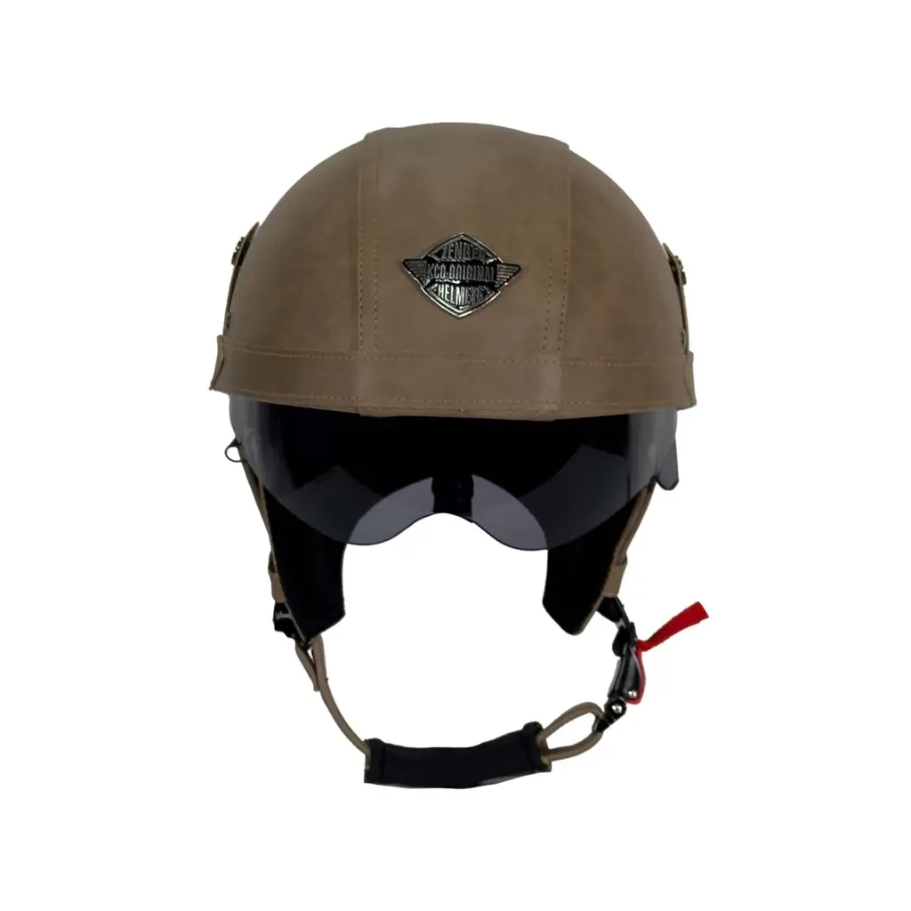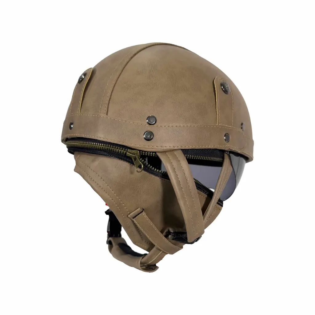TEX 701 ZN Deri Miğfer Kask, motosiklet sürücülerine hem estetik hem de fonksiyonel bir sürüş deneyimi sunmak için tasarlanmış özel bir yarım kask modelidir. ABS dış kabuk üzerine uygulanan şık deri kaplama, ürüne premium bir görünüm kazandırırken askeri tarzıyla dikkat çeker.
