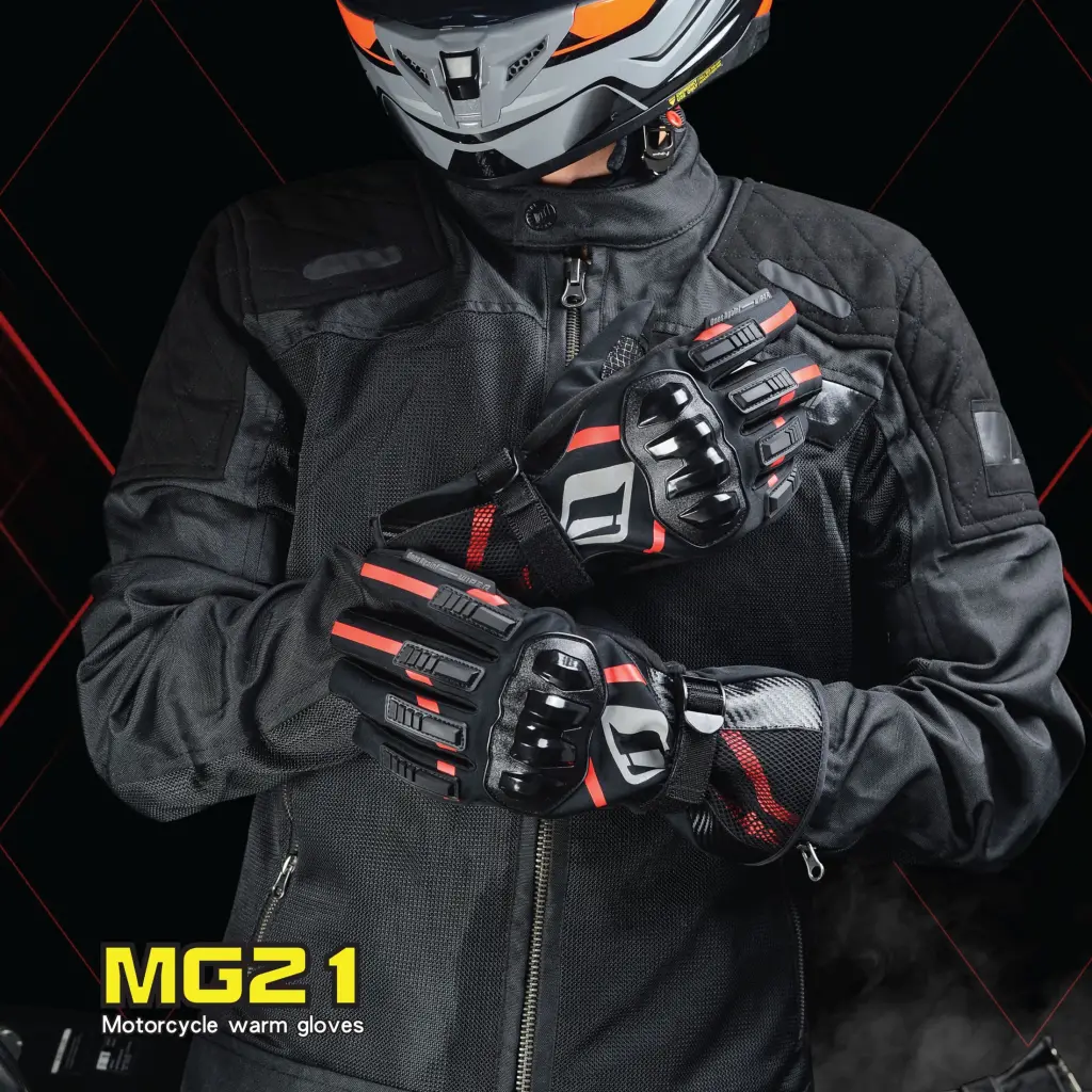 Ones Again MG21 motosiklet eldiveni, EN 13594:2015 standartlarına uygun CE sertifikalı yapısı, suya dayanıklı tasarımı, karbon görünümlü kabuk koruması ve dokunmatik ekran uyumu ile hem güvenliği hem konforu bir arada sunar.