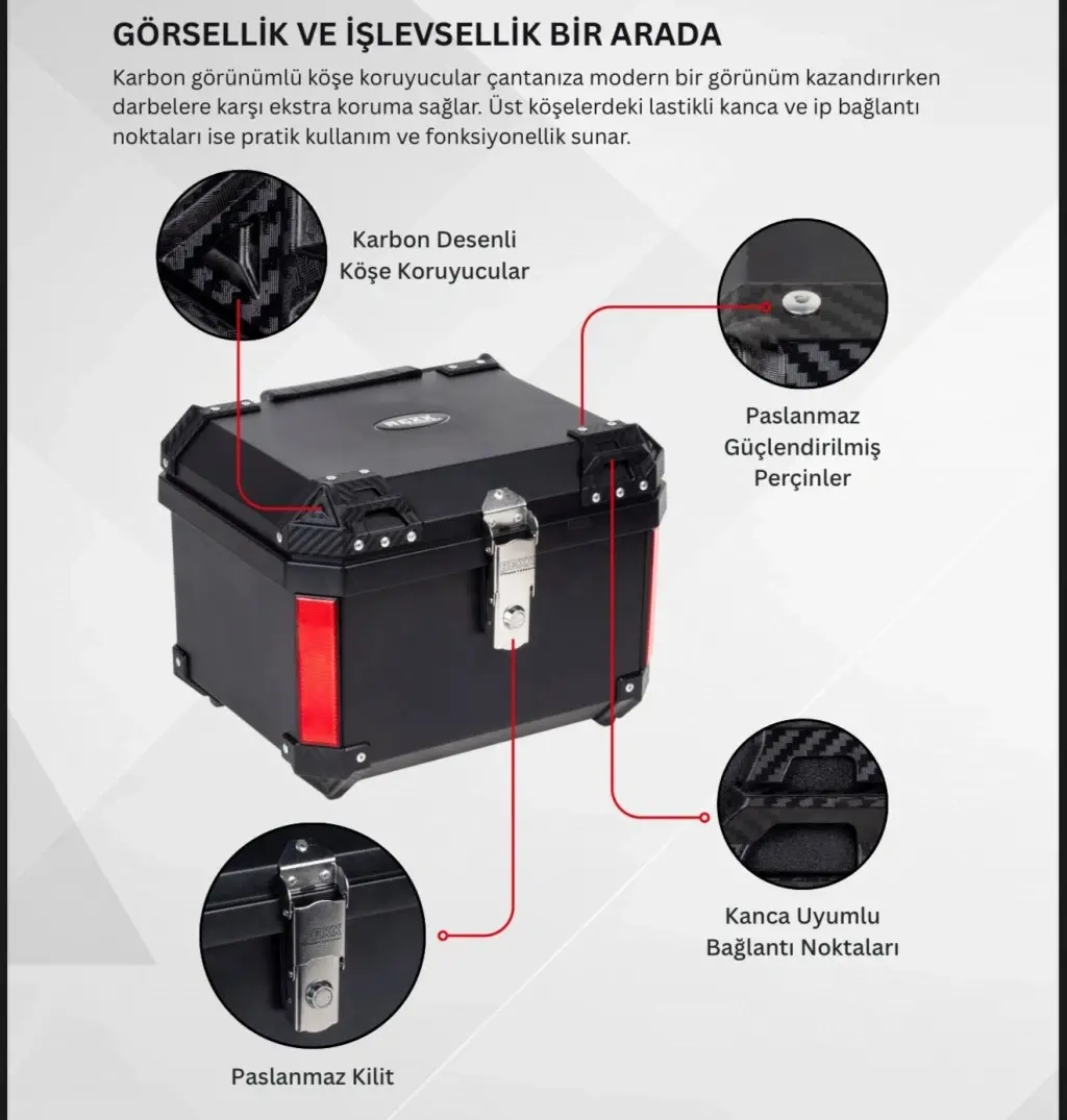 REXX 45 LİTRE ABS MOTOSİKLET ARKA ÇANTA - 10-RENKLİ